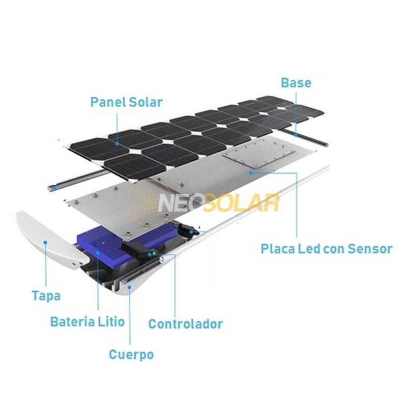 Foco Solar Calle Led 20w con Panel Solar , Bateria Litio y Sensor Movimiento