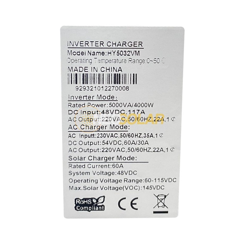Inversor Híbrido 5KVA/4000W Controlador MPPT 60A 48V-HY5032VM