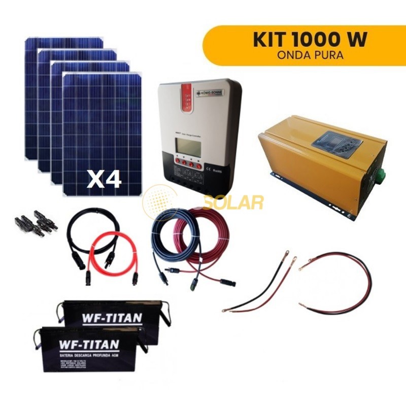 Kit Full Energia Solar Onda Pura UPS Hogar 1.000W Off Grid,Consumos Elevados MPPT